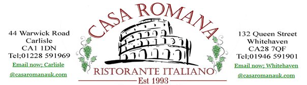 Casa Romana, in Carlisle & Whitehaven, are both well established having opened in 1993 and today, the same chef/proprietor still oversees everything.